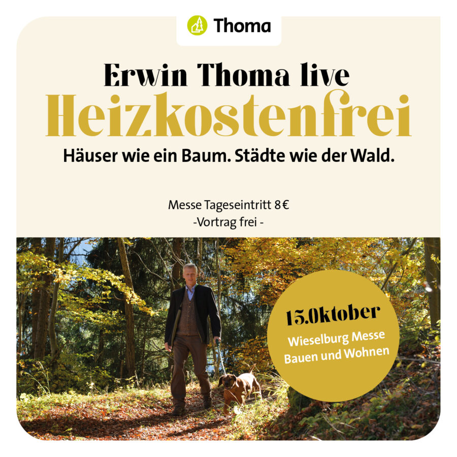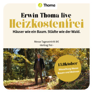 Heizkosten. Das Wort löst bei vielen Stress aus. Wir haben etwas dagegen: „Heizkostenfrei – Häuser wie ein Baum. Städte wie der Wald.“, der Vortrag von Erwin Thoma am Samstag, den 15. Oktober.