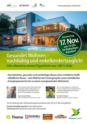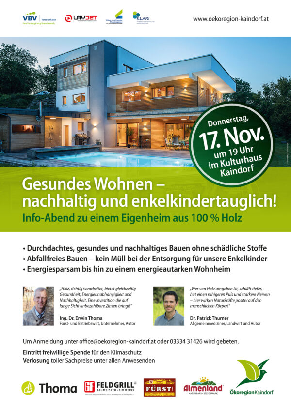 Gesundes Wohnen – nachhaltig und enkelkindertauglich! Informationsabend im Kulturhaus Kaindorf